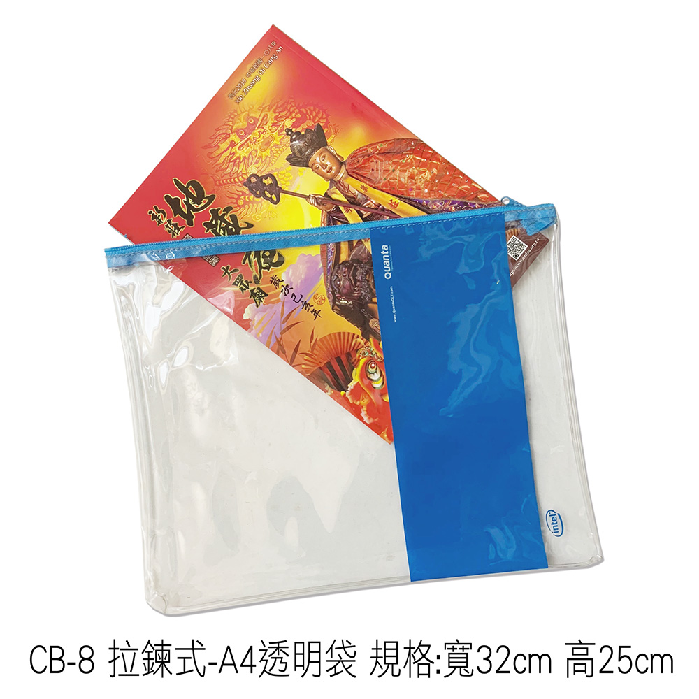 CB-8 拉鍊式-A4透明袋 規格:寬32cm 高25cm接受進行原廠委託設計製造ODM