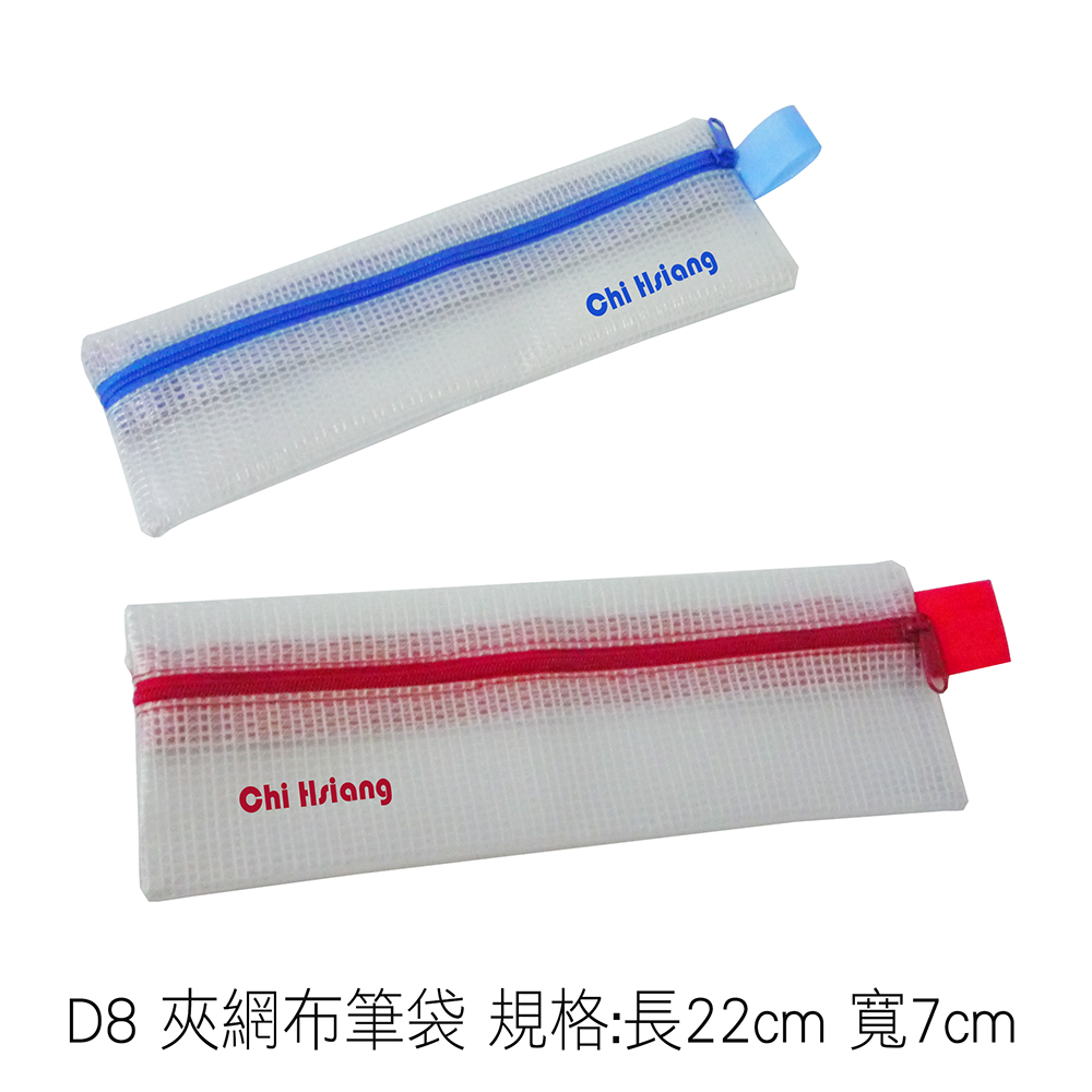 多樣設計:齊祥塑膠企業有限公司提供D8 夾網布筆袋 規格:長22cm 寬7cm的多樣化設計